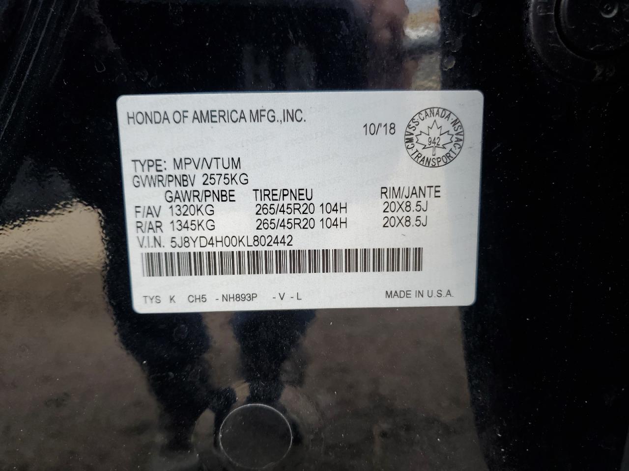 Колір ЧорнийЦиліндри 6Привід Повний привідVIN 5J8YD4H00KL802442Стан Заводиться та їде (перевірено)Ушкодження Передня або задняДата аукціону 2025-11-04