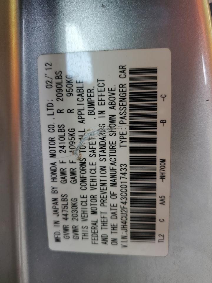 Колір СрібнийЦиліндри 4VIN JH4CU2F43CC017433Стан Заводиться та їде (перевірено)Ушкодження Передня або задня