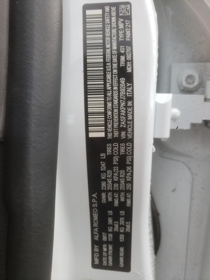 ALFA ROMEO STELVIO 2.0 2018 р.в., Повний привід (ZASFAKPN7J7B92649) з США