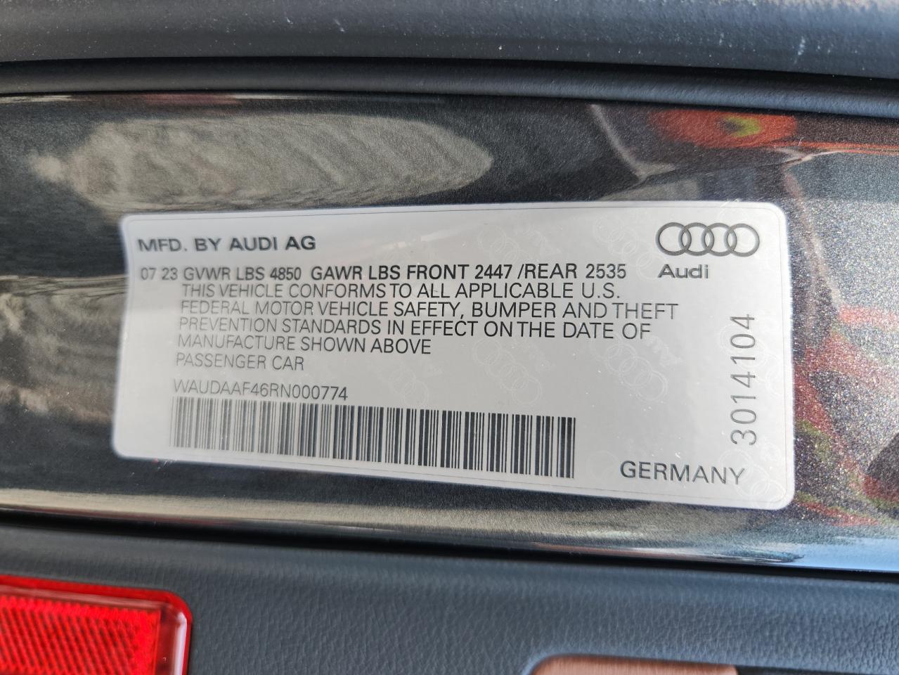 AUDI A4 2.0 2024 р.в., Повний привід (WAUDAAF46RN000774) з США