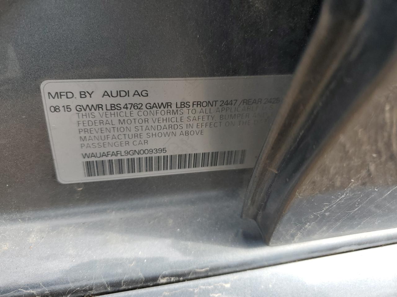 Колір СірийЦиліндри 4VIN WAUAFAFL9GN009395Стан Заводиться та їде (перевірено)Ушкодження Передня або задняДата аукціону 2025-11-07