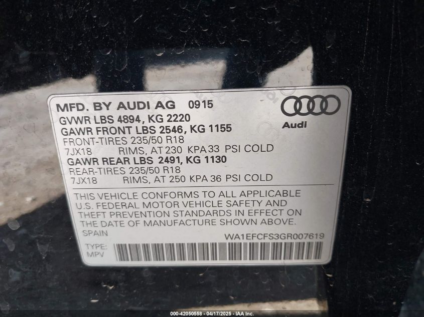AUDI Q3 2.0 2016 р.в., Повний привід (WA1EFCFS3GR007619) з США