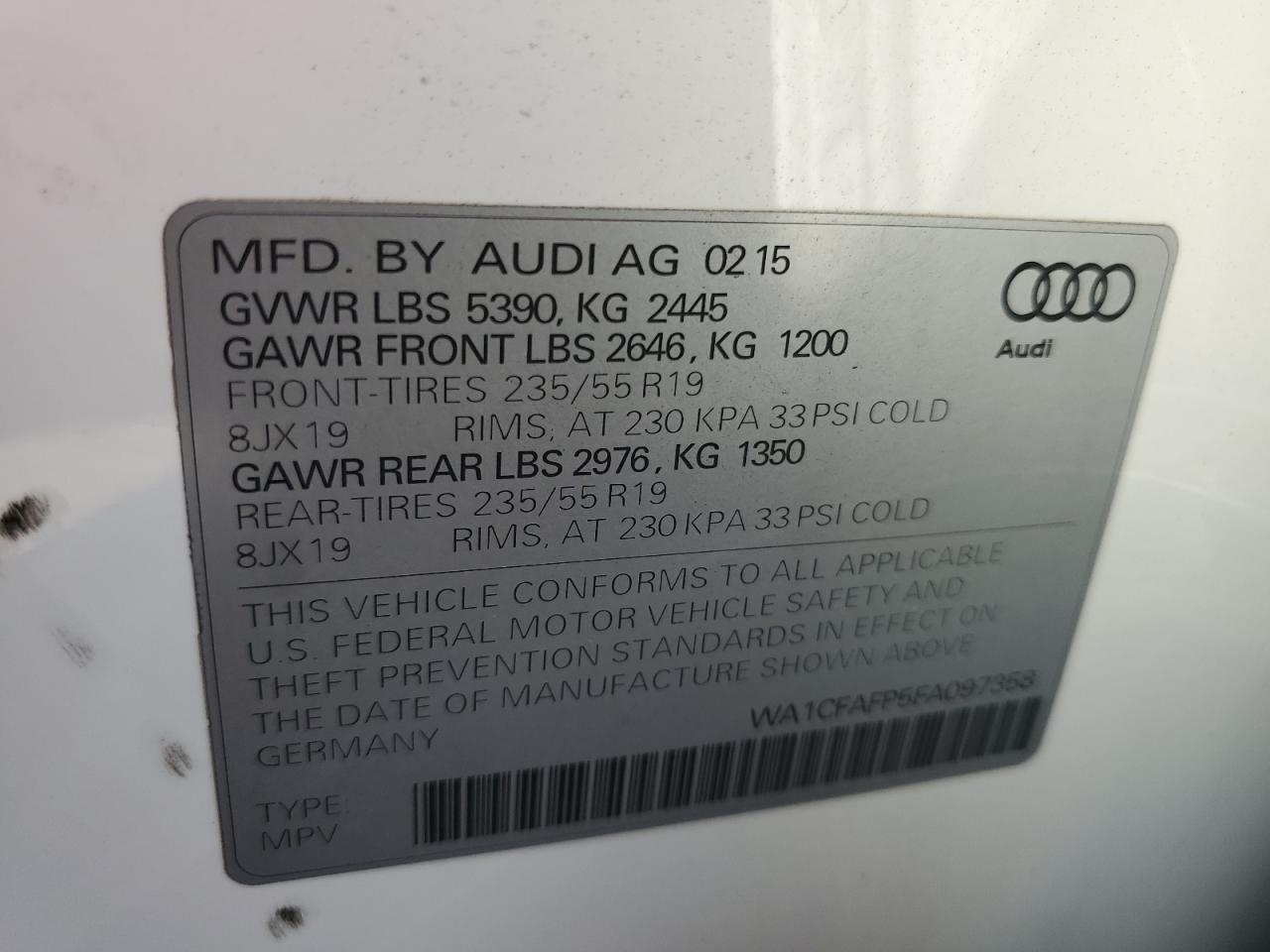 AUDI Q5 2.0 2015 р.в., Повний привід (WA1CFAFP5FA097358) з США