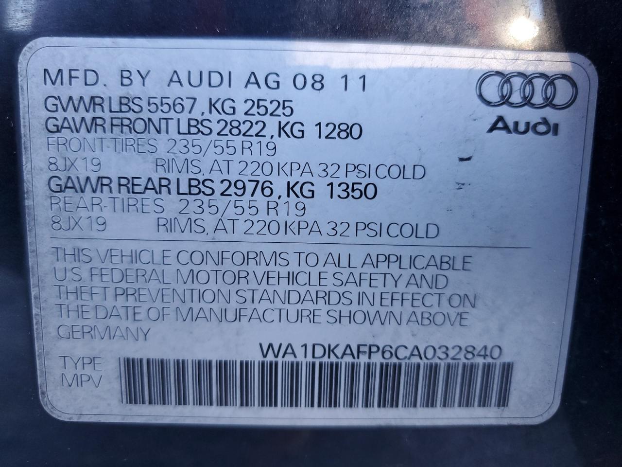 AUDI Q5 3.2 2012 р.в., Повний привід (WA1DKAFP6CA032840) з США