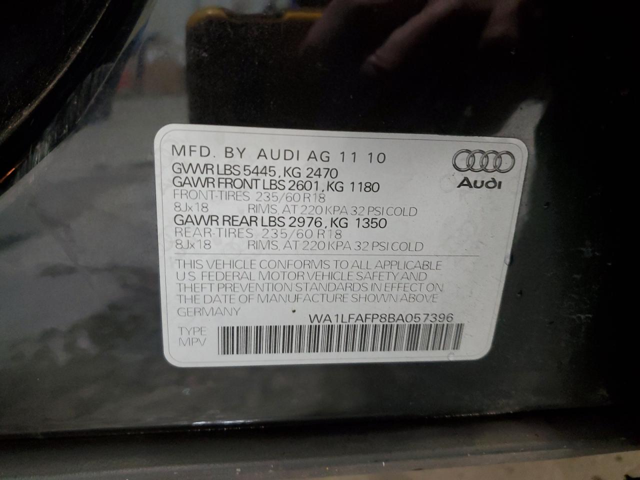 Колір ЧорнийЦиліндри 4Привід Повний привідVIN WA1LFAFP8BA057396Стан Заводиться та їде (перевірено)Ушкодження Передня або задняДата аукціону 2025-11-03
