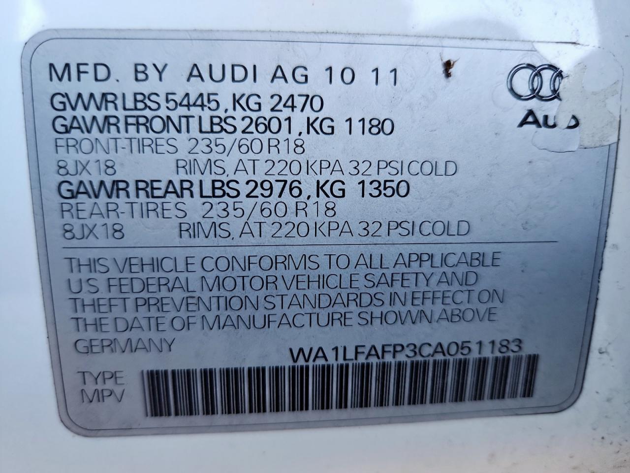2012 AUDI Q5 3.2 PREMIUM PLUS