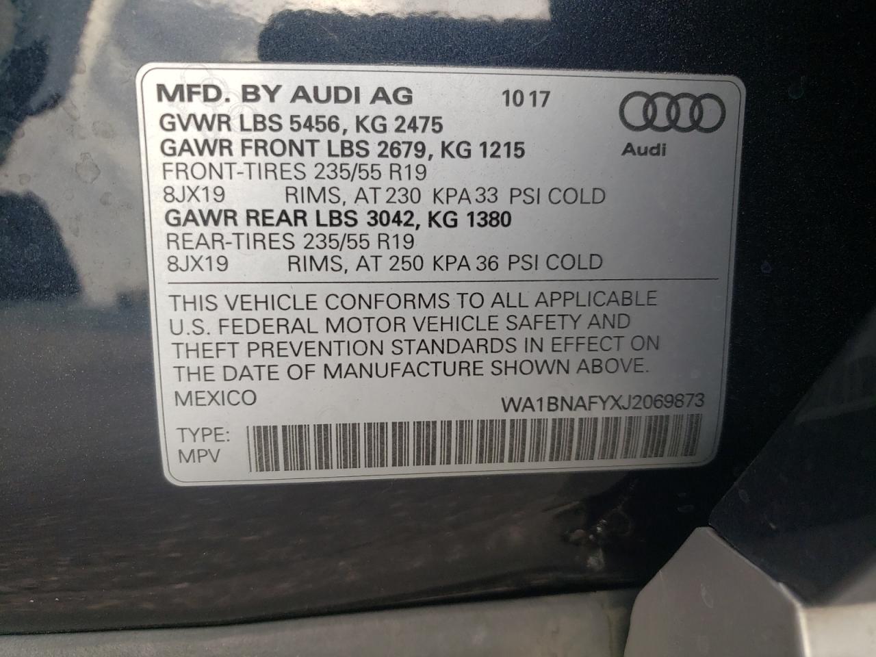 AUDI Q5 2.0 2018 р.в., Повний привід (WA1BNAFYXJ2069873) з США