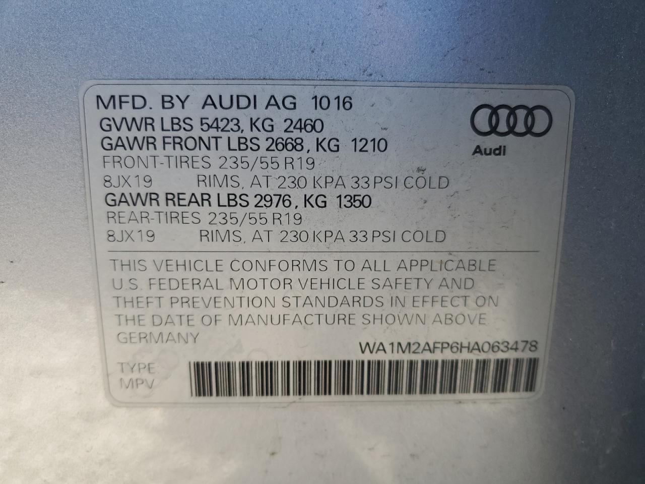 AUDI Q5 2.0 2017 р.в., Повний привід (WA1M2AFP6HA063478) з США