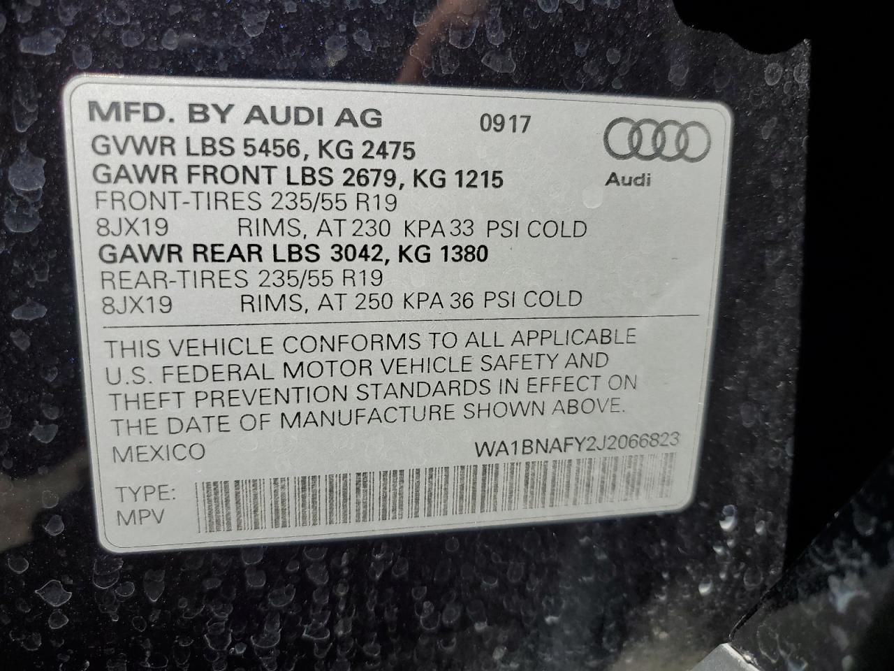 AUDI Q5 2.0 2018 р.в., Повний привід (WA1BNAFY2J2066823) з США