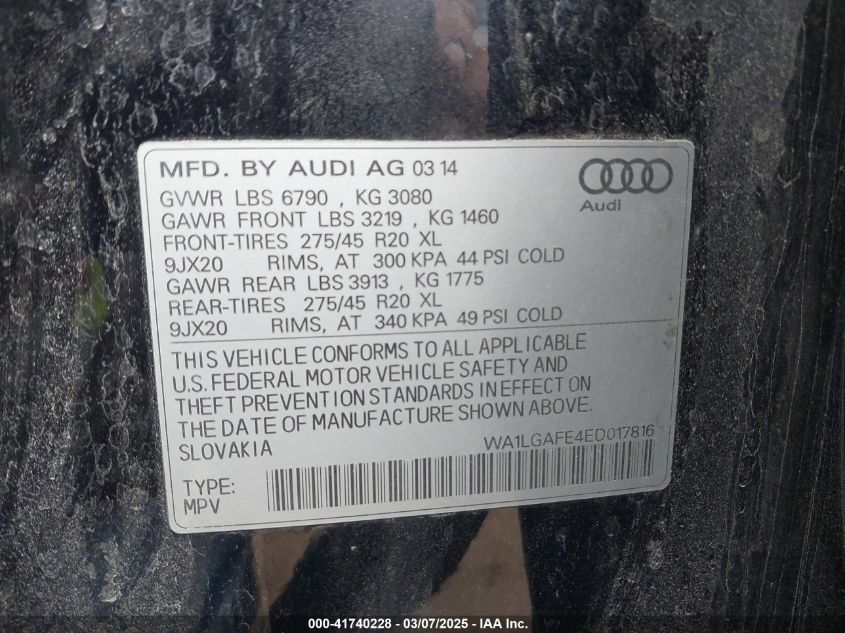 AUDI Q7 3.0 2014 р.в., Повний привід (WA1LGAFE4ED017816) з США