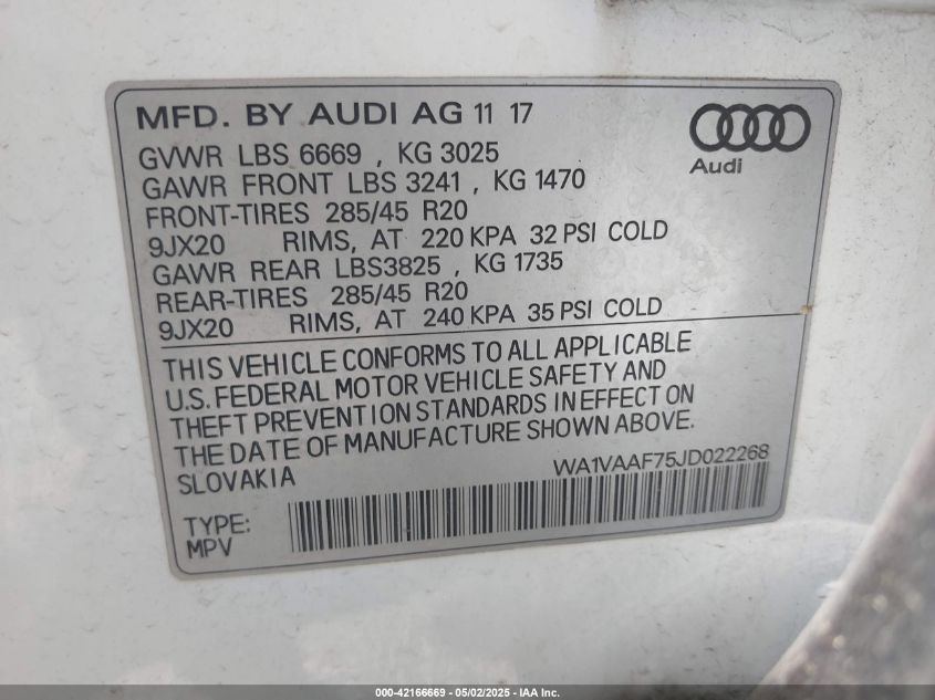 AUDI Q7 3.0 2018 р.в., Повний привід (WA1VAAF75JD022268) з США