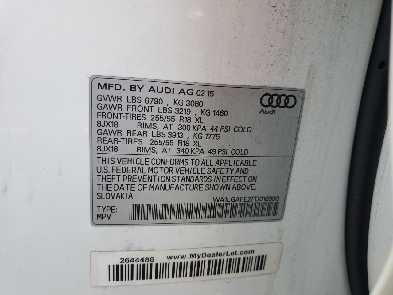 AUDI Q7 3.0 2015 р.в., Повний привід (WA1LGAFE2FD016990) з США