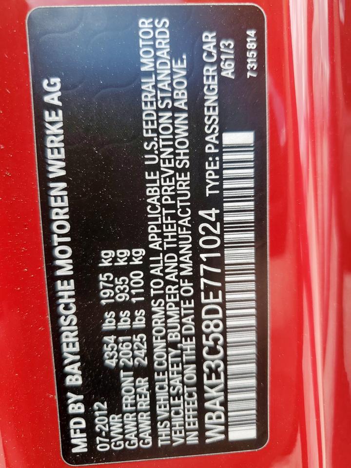 BMW 3 SERIES 3.0 2013 р.в., Задній привід (WBAKE3C58DE771024) з США