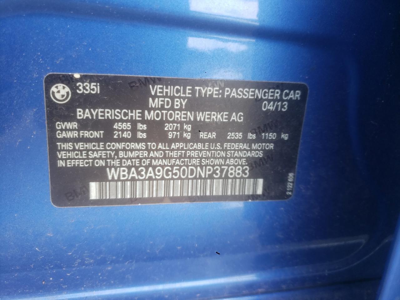 BMW 3 SERIES 3.0 2013 р.в., Задній привід (WBA3A9G50DNP37883) з США