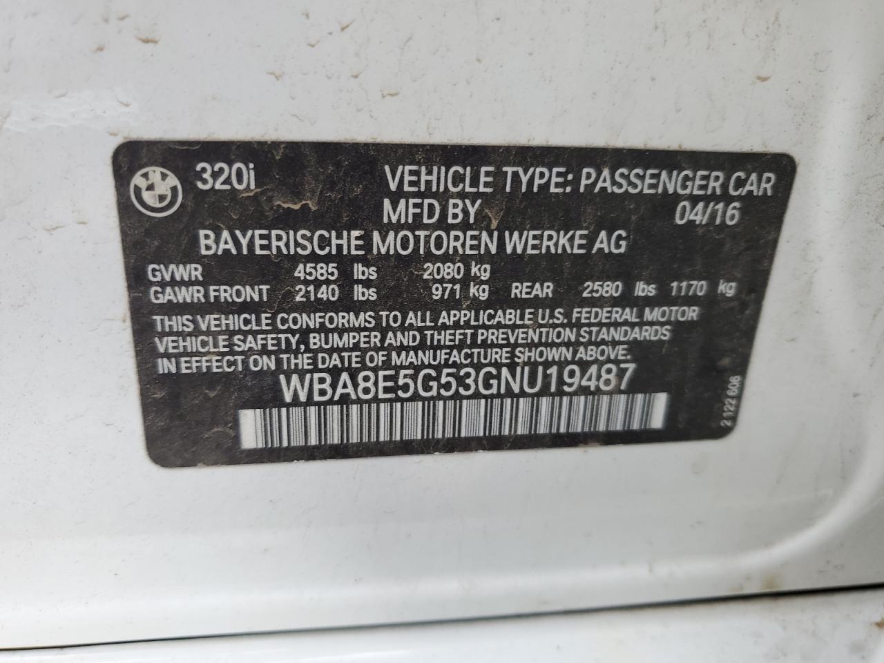 Колір БілийЦиліндри 4Привід Повний привідVIN WBA8E5G53GNU19487Стан НевідомоУшкодження Передня або задня