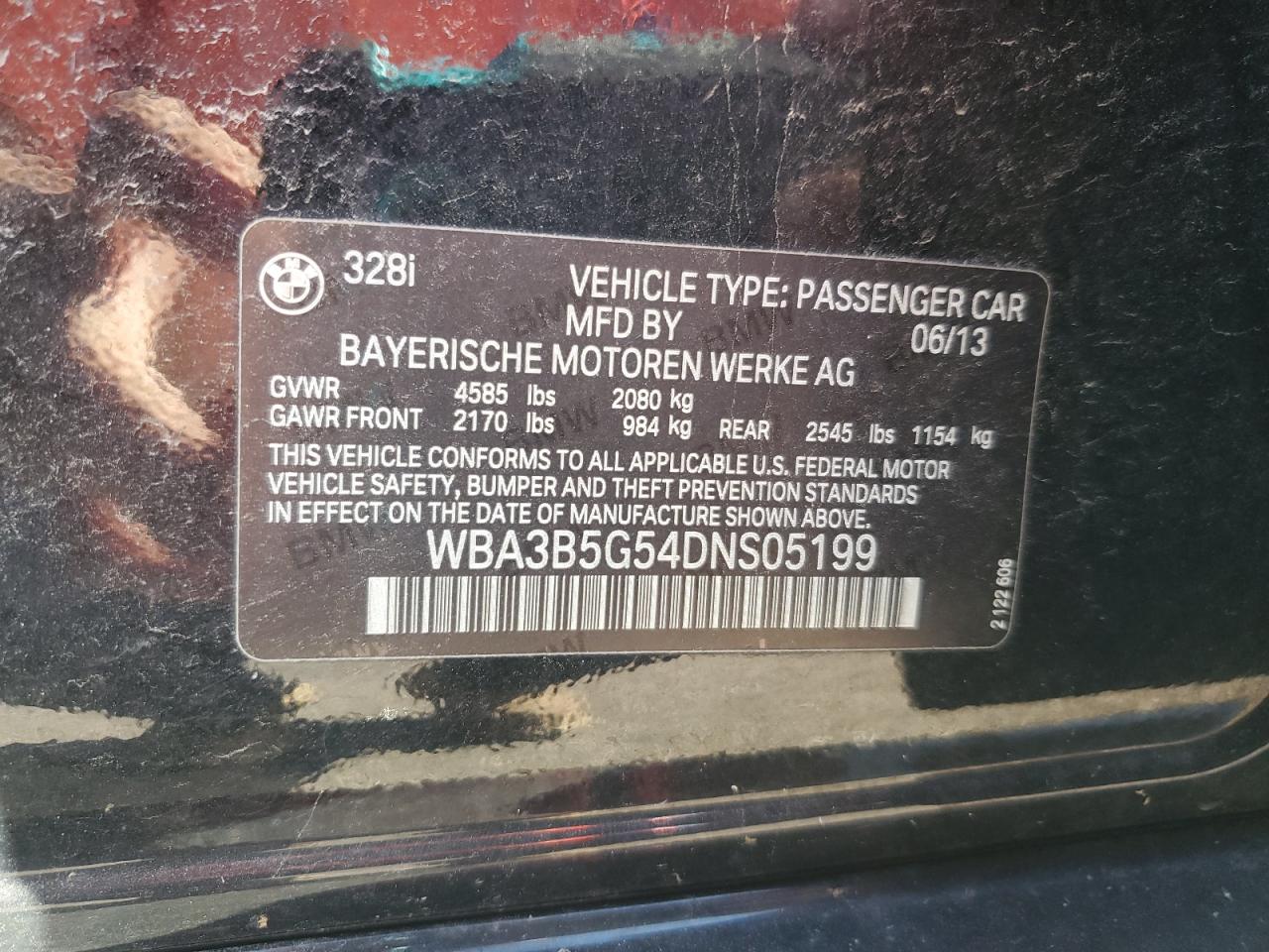 BMW 3 SERIES 2.0 2013 р.в., Повний привід (WBA3B5G54DNS05199) з США