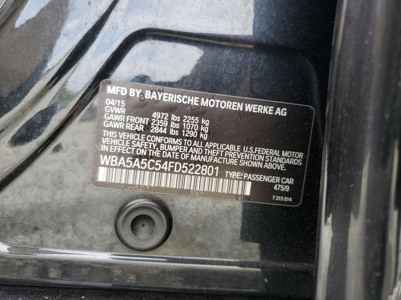 2015 BMW 5 SERIES I