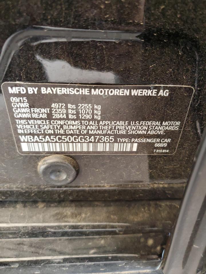 BMW 5 SERIES 2.0 2016 р.в., Задній привід (WBA5A5C50GG347365) з США