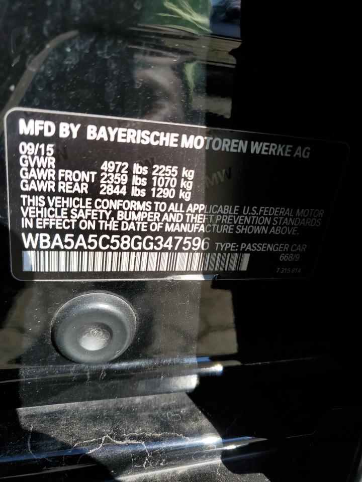 BMW 5 SERIES 2.0 2016 р.в., Задній привід (WBA5A5C58GG347596) з США