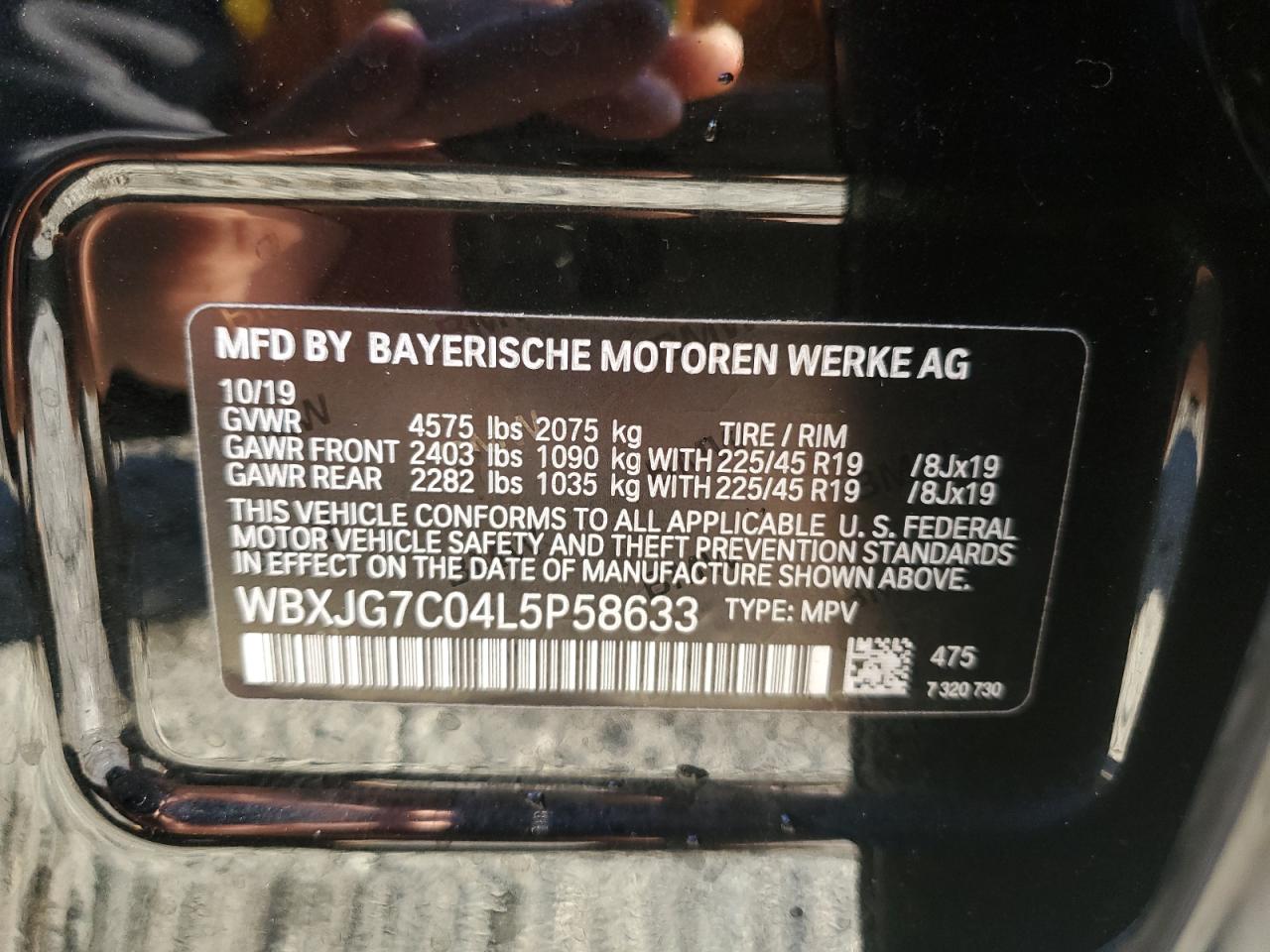 Колір ЧорнийЦиліндри 4VIN WBXJG7C04L5P58633Стан ЗаводитьсяУшкодження Передня або задня