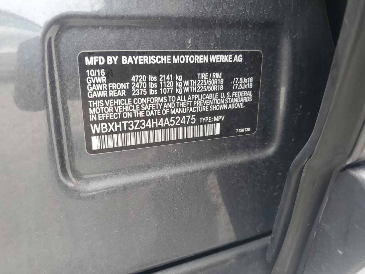 Колір СрібнийЦиліндри 4Привід Повний привідVIN WBXHT3Z34H4A52475Стан Заводиться та їде (перевірено)Ушкодження З боківДата аукціону 2025-11-04