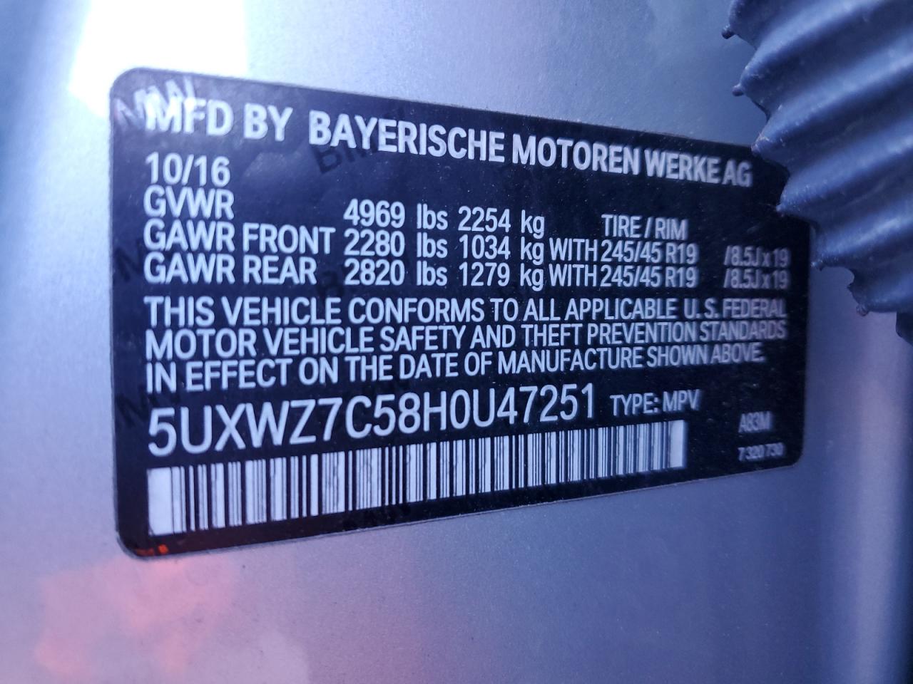 BMW X3 2.0 2017 р.в., Задній привід (5UXWZ7C58H0U47251) з США