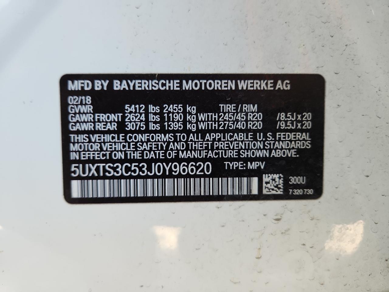 BMW X3 3.0 2018 р.в., Повний привід (5UXTS3C53J0Y96620) з США