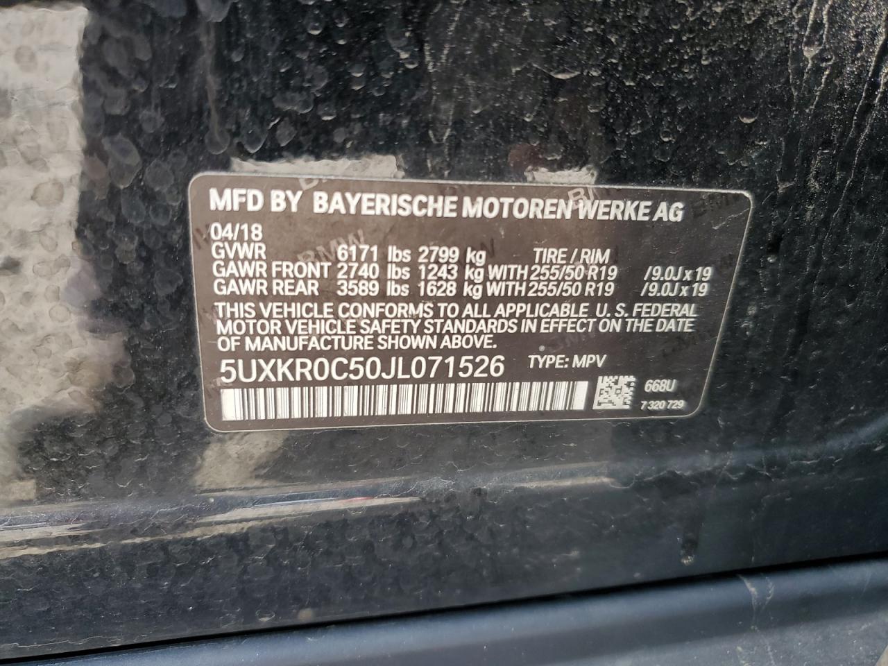 Колір ЧорнийЦиліндри 6Привід Повний привідVIN 5UXKR0C50JL071526Стан Заводиться та їде (перевірено)Ушкодження Задня