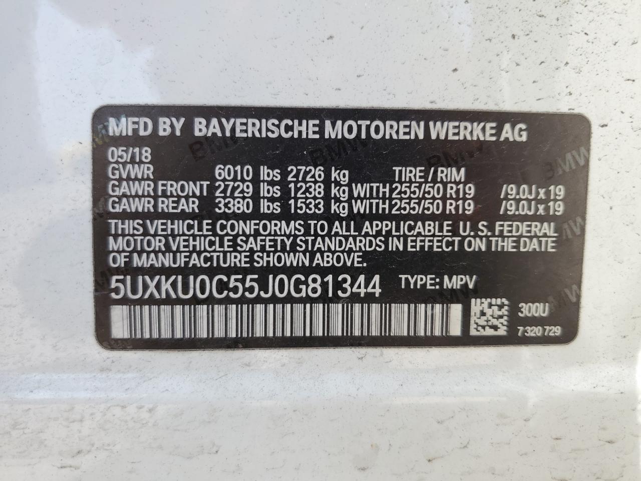 Колір БілийЦиліндри 6Привід Задній привідVIN 5UXKU0C55J0G81344Стан НевідомоУшкодження ЗадняДата аукціону 2025-11-06