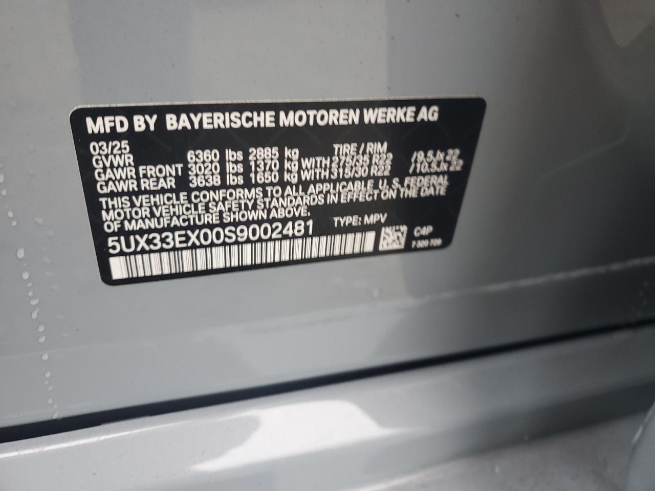 BMW X6 3.0 2025 р.в., Повний привід (5UX33EX00S9002481) з США