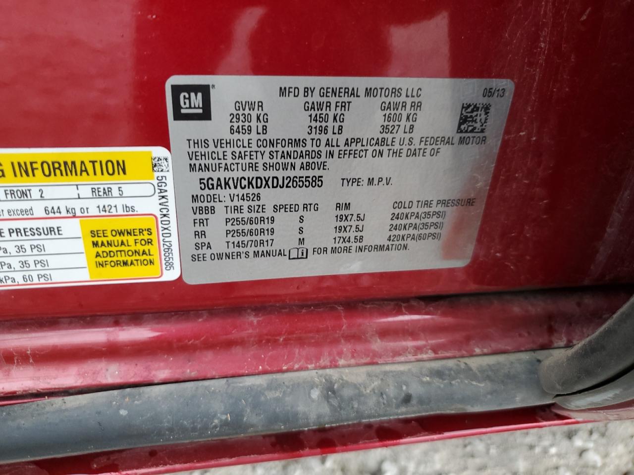 Колір ЧервонийЦиліндри 6Привід Повний привідVIN 5GAKVCKDXDJ265585Стан Заводиться та їде (перевірено)Ушкодження Град