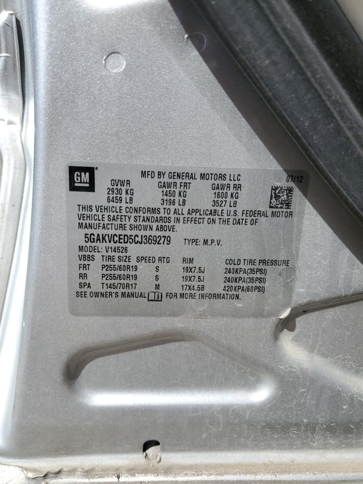 Колір СрібнийЦиліндри 6Привід Повний привідVIN 5GAKVCED5CJ369279Стан Заводиться та їде (перевірено)Ушкодження Передня або задня