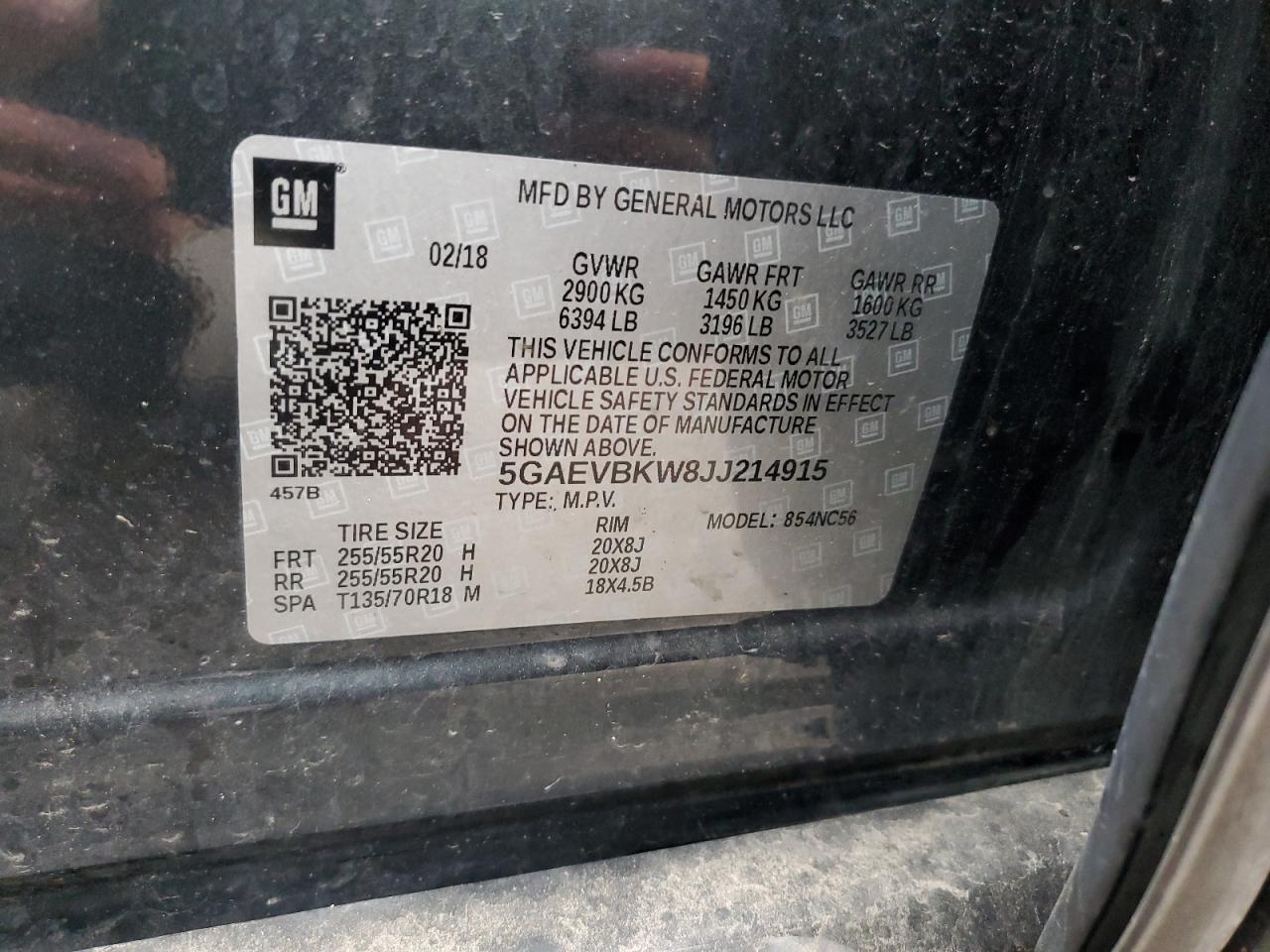 Колір СинійЦиліндри 6Привід Повний привідVIN 5GAEVBKW8JJ214915Стан Заводиться та їде (перевірено)Ушкодження Передня або задня