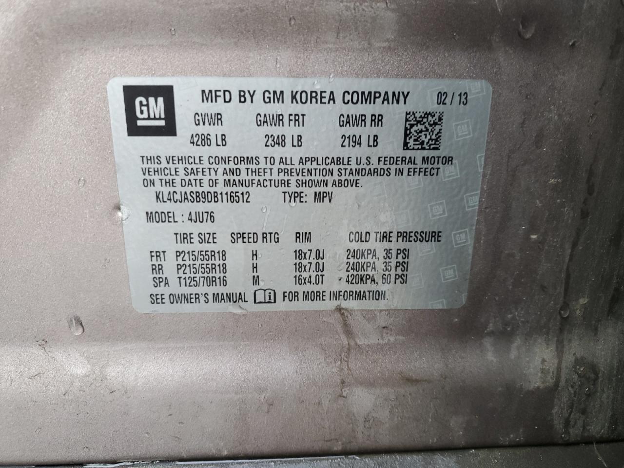 Колір КоричневийЦиліндри 4VIN KL4CJASB9DB116512Стан Заводиться та їде (перевірено)Ушкодження Передня або задня