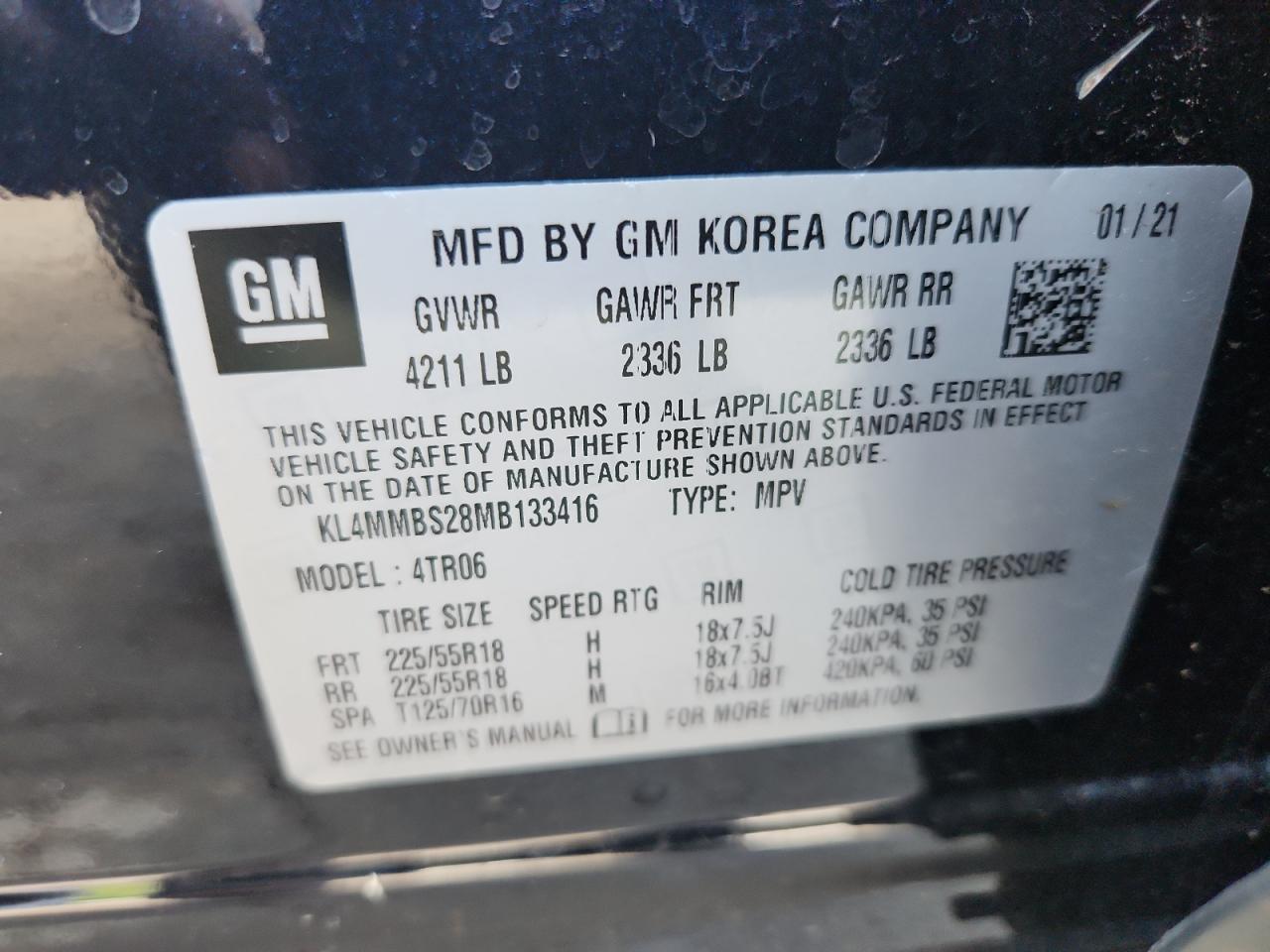 Колір ЧорнийЦиліндри 3VIN KL4MMBS28MB133416Стан Заводиться та їде (перевірено)Ушкодження Передня або задняДата аукціону 2025-11-06