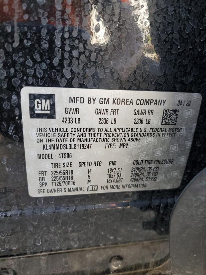 Колір ЧорнийЦиліндри 3VIN KL4MMDSL3LB119247Стан Заводиться та їде (перевірено)Ушкодження ЗадняДата аукціону 2025-11-05