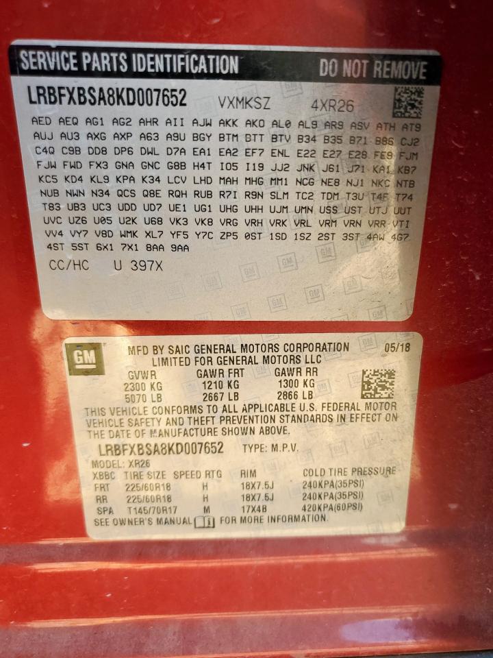 BUICK ENVISION 2.5 2019 р.в., (LRBFXBSA8KD007652) з США