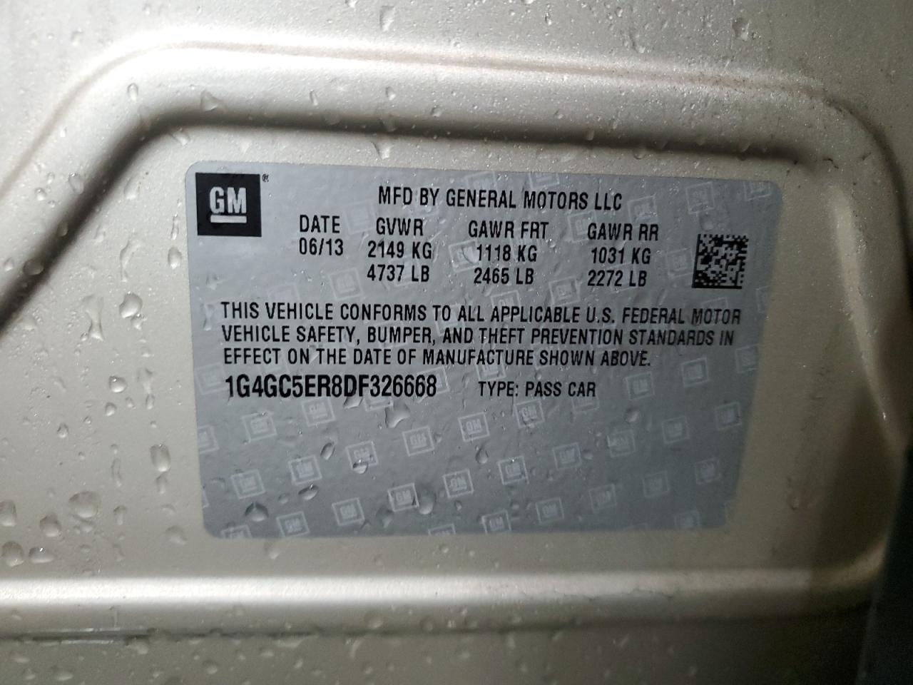 Колір БежевийЦиліндри 4VIN 1G4GC5ER8DF326668Стан Заводиться та їде (перевірено)Ушкодження Передня або задняДата аукціону 2025-11-11