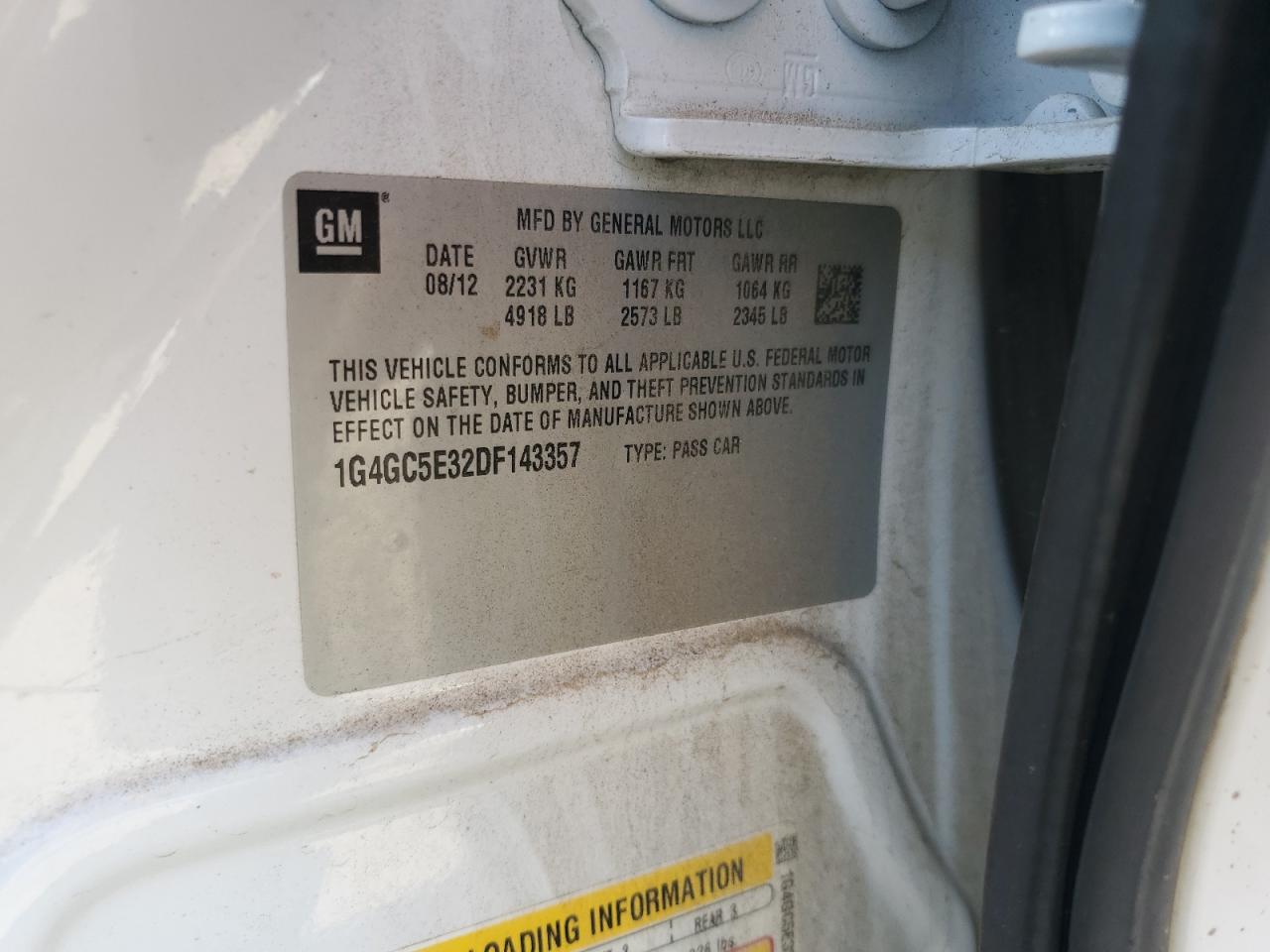Колір БілийЦиліндри 6VIN 1G4GC5E32DF143357Стан Заводиться та їде (перевірено)Ушкодження ЗадняДата аукціону 2025-11-03