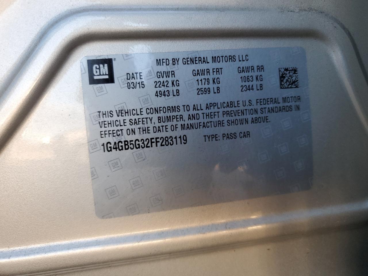 Колір БежевийЦиліндри 6VIN 1G4GB5G32FF283119Стан НевідомоУшкодження Передня або задня