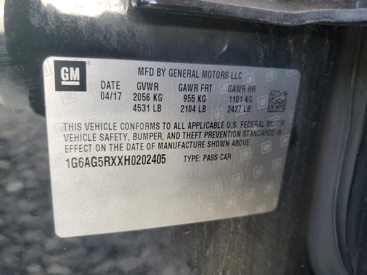 Колір ЧорнийЦиліндри 4Привід Повний привідVIN 1G6AG5RXXH0202405Стан НевідомоУшкодження Передня або задня