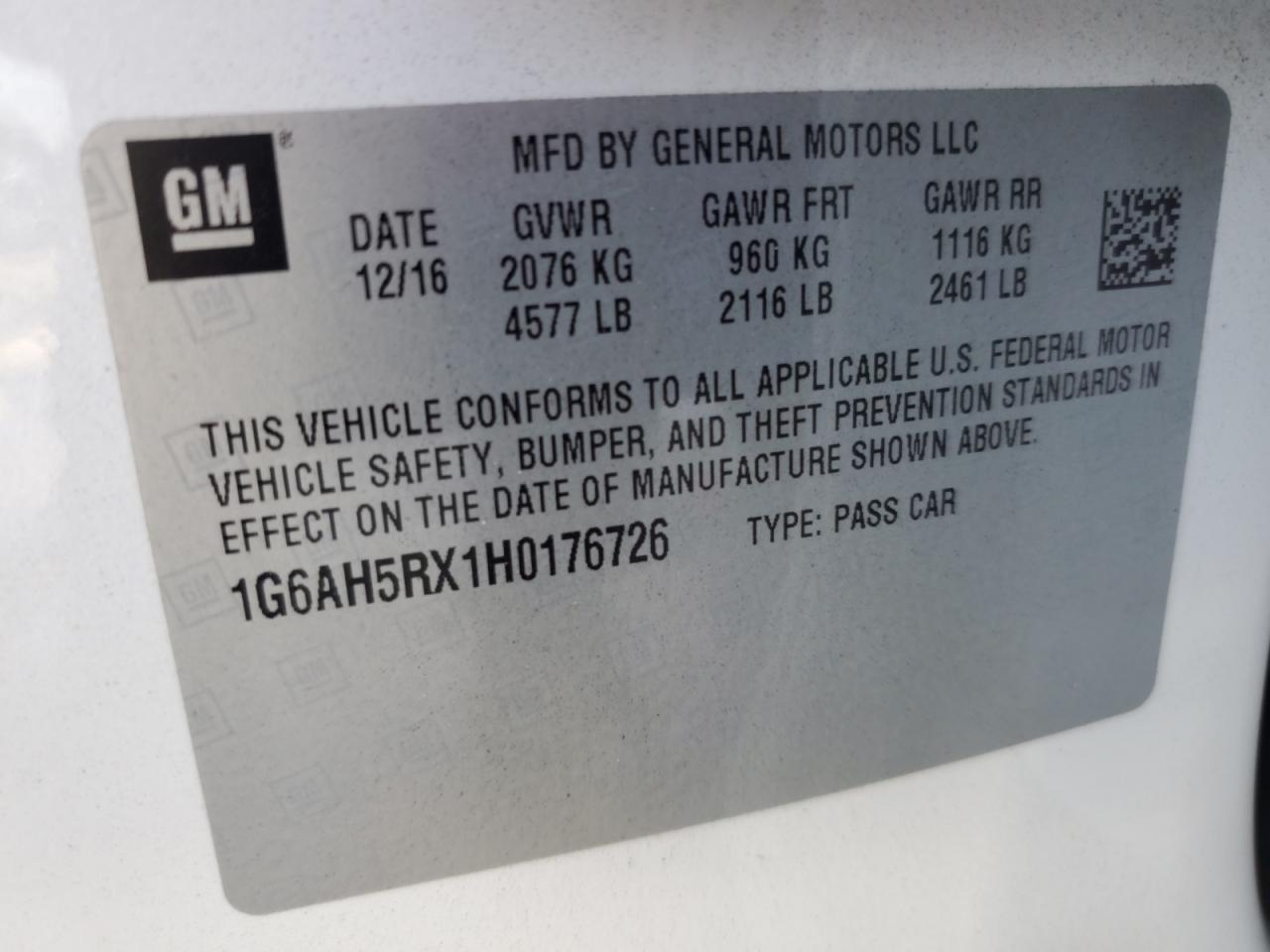 Колір БілийЦиліндри 4Привід Повний привідVIN 1G6AH5RX1H0176726Стан Заводиться та їде (перевірено)Ушкодження Передня або задня
