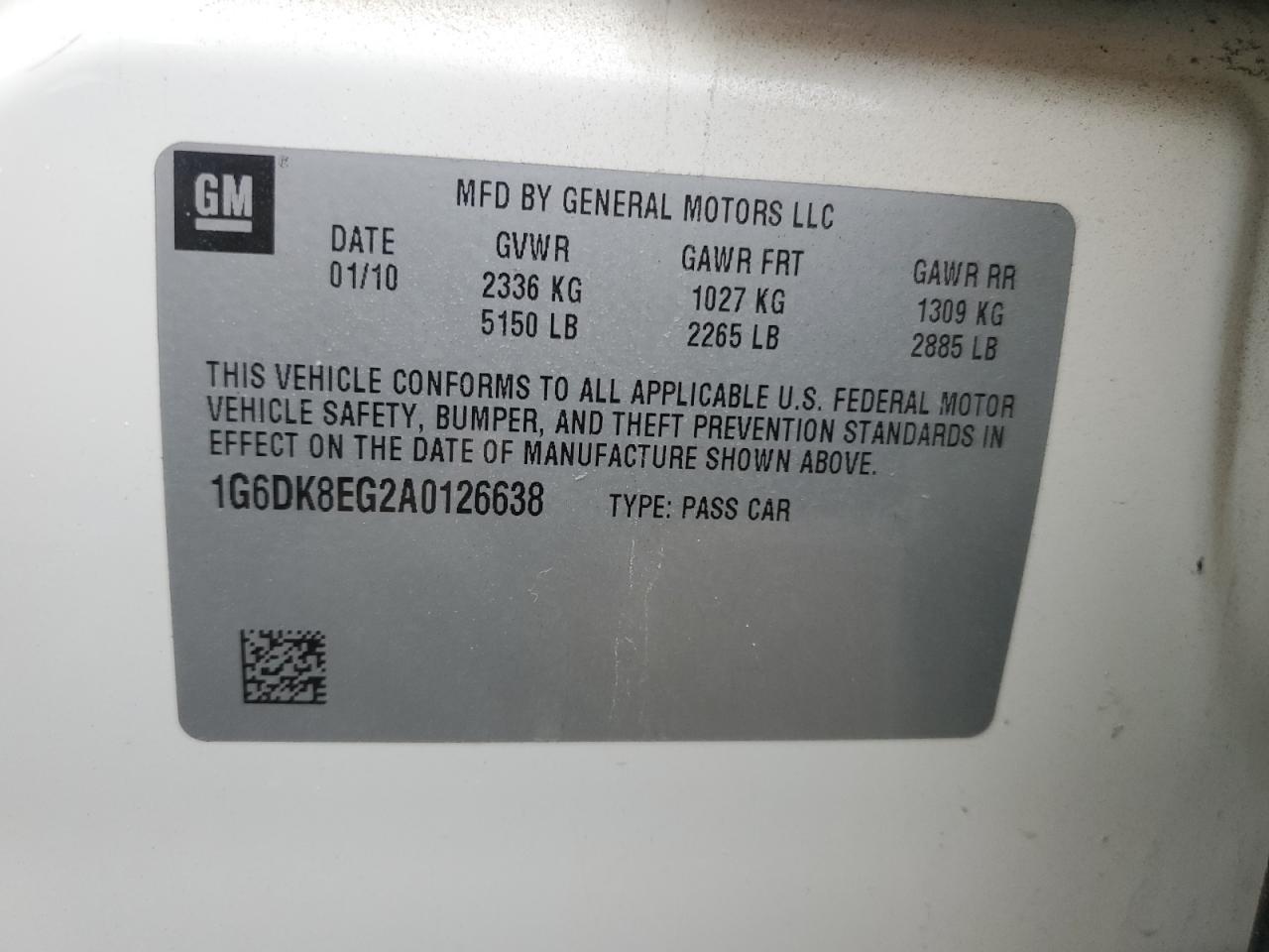 Колір БілийЦиліндри 6Привід Задній привідVIN 1G6DK8EG2A0126638Стан Заводиться та їде (перевірено)Ушкодження Передня або задняДата аукціону 2025-11-12