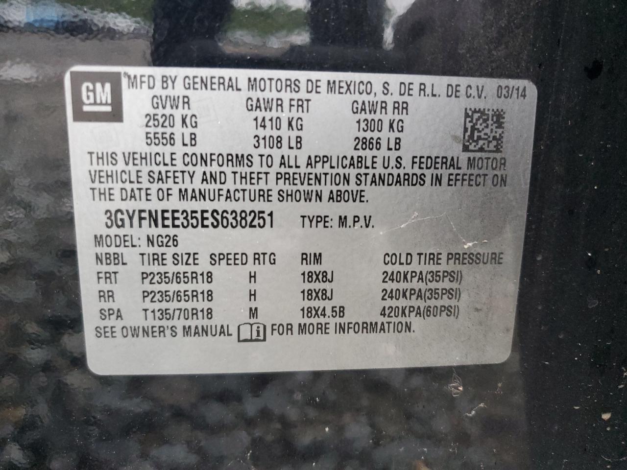 Колір ЧорнийЦиліндри 6Привід Повний привідVIN 3GYFNEE35ES638251Стан Заводиться та їде (перевірено)Ушкодження Передня або задняДата аукціону 2025-11-03