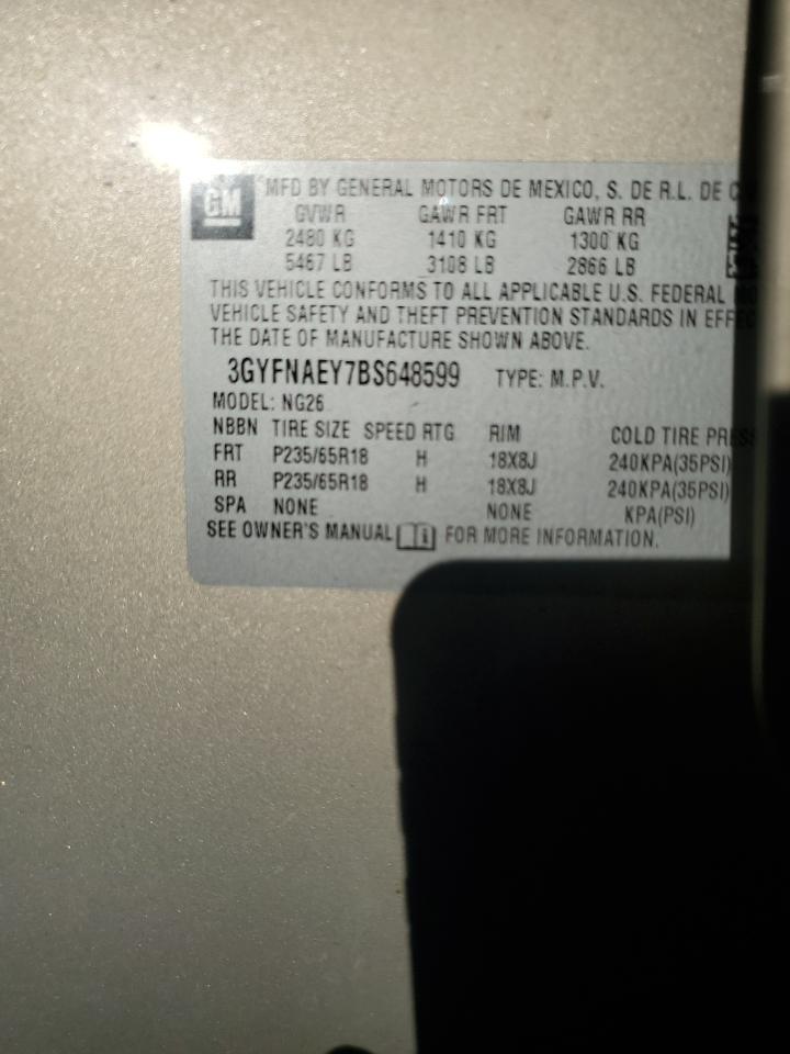 Колір ЗагарЦиліндри 6VIN 3GYFNAEY7BS648599Стан Заводиться та їде (перевірено)Ушкодження Передня або задня