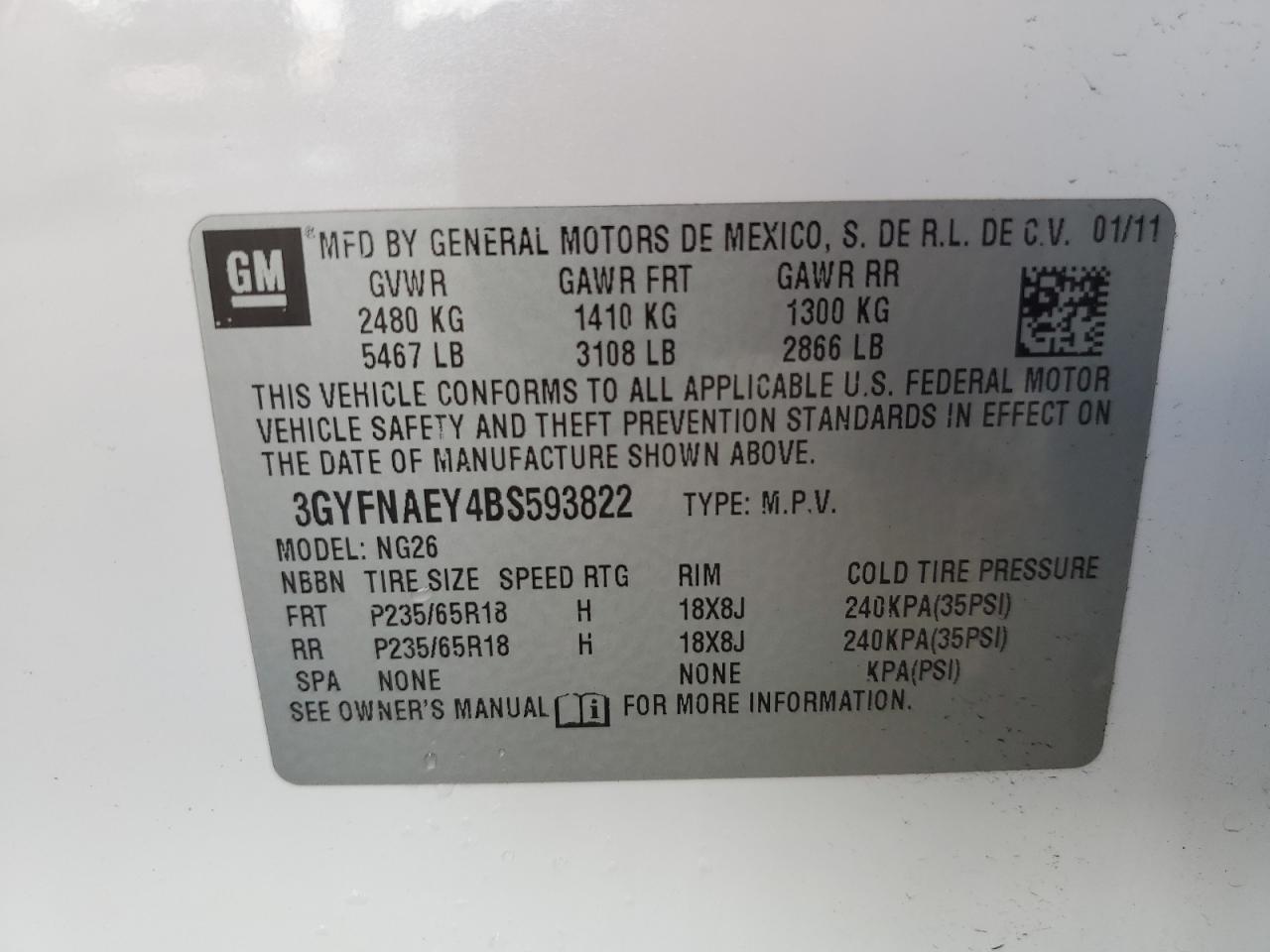 Колір БілийЦиліндри 6VIN 3GYFNAEY4BS593822Стан Заводиться та їде (перевірено)Ушкодження Передня або задняДата аукціону 2025-11-04