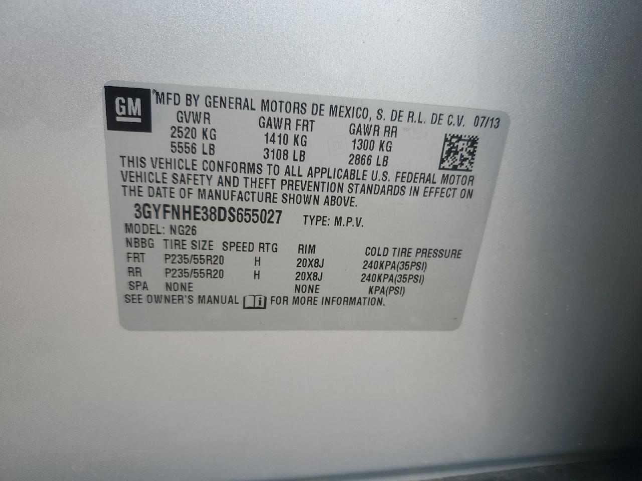 Колір СрібнийЦиліндри 6Привід Повний привідVIN 3GYFNHE38DS655027Стан Заводиться та їде (перевірено)Ушкодження ЗадняДата аукціону 2025-11-05