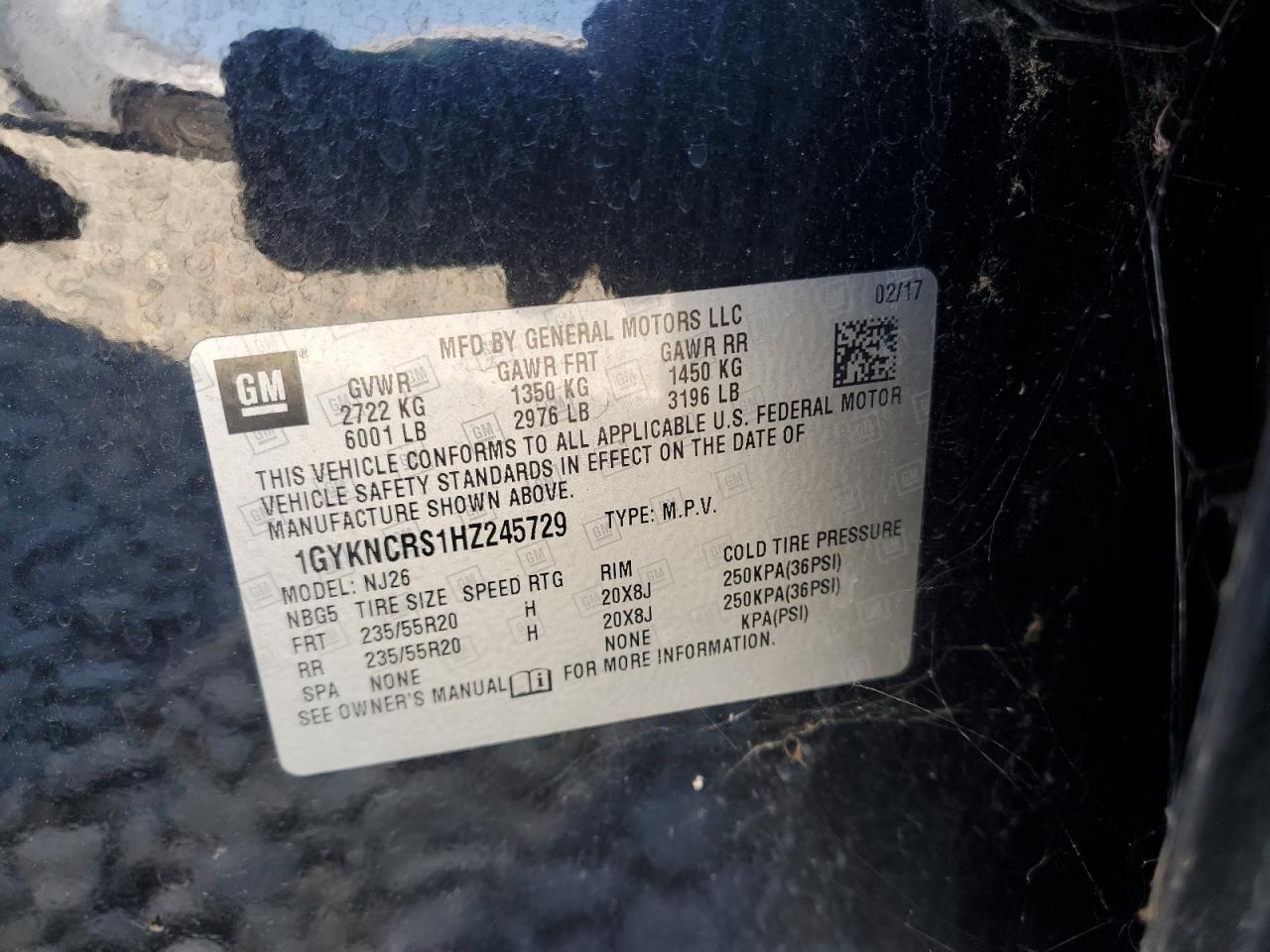 Колір ЧорнийЦиліндри 6VIN 1GYKNCRS1HZ245729Стан Заводиться та їде (перевірено)Ушкодження Передня або задня