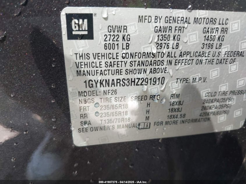 Колір СірийЦиліндри 6Привід Передній привідVIN 1GYKNARS3HZ291910Стан Заводиться та їде (перевірено)Ушкодження Передня або задня
