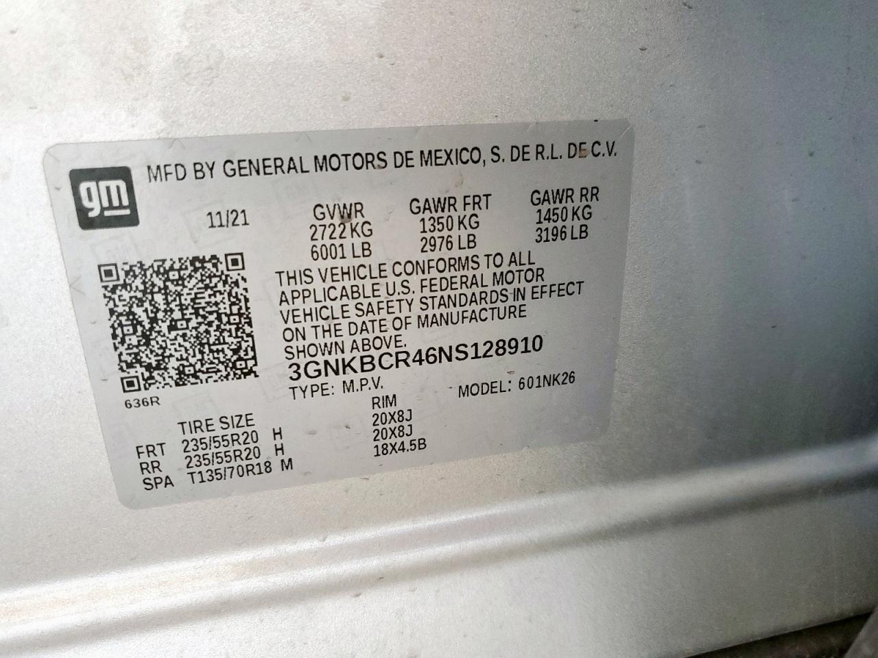 Колір СрібнийЦиліндри 4VIN 3GNKBCR46NS128910Стан Заводиться та їде (перевірено)Ушкодження НезначніДата аукціону 2025-11-04